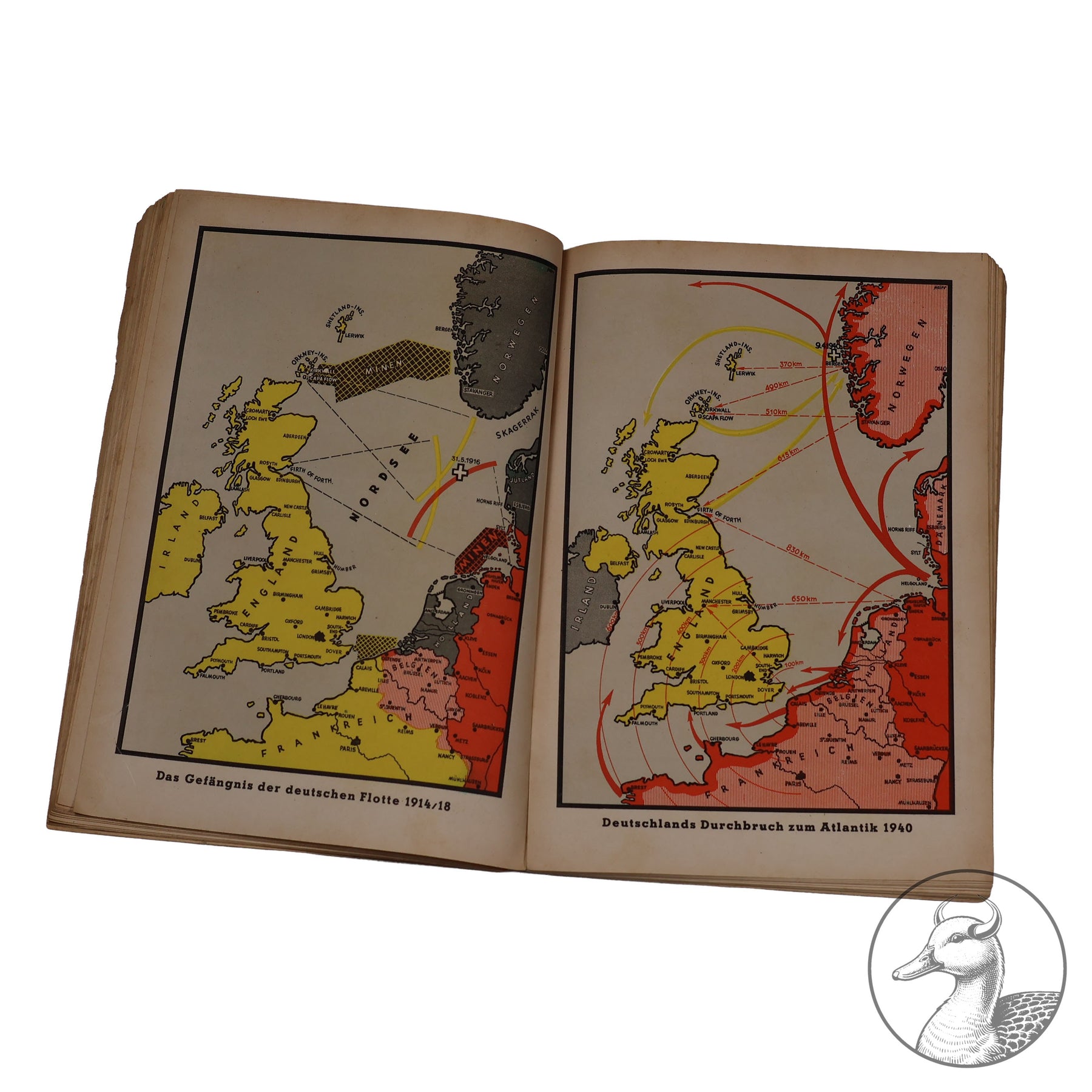 Kartenwerk Inhalt: Die Vorbedingungen des Krieges 1939/41 - Die Feldzüge in West und Ost / Die Blockade der britischen Inseln / Ostasien wird Kriegsschauplatz / Mittelost und Vorderer Orient / Abwehrstellung gegen USA / Schlussberichte des OKW.