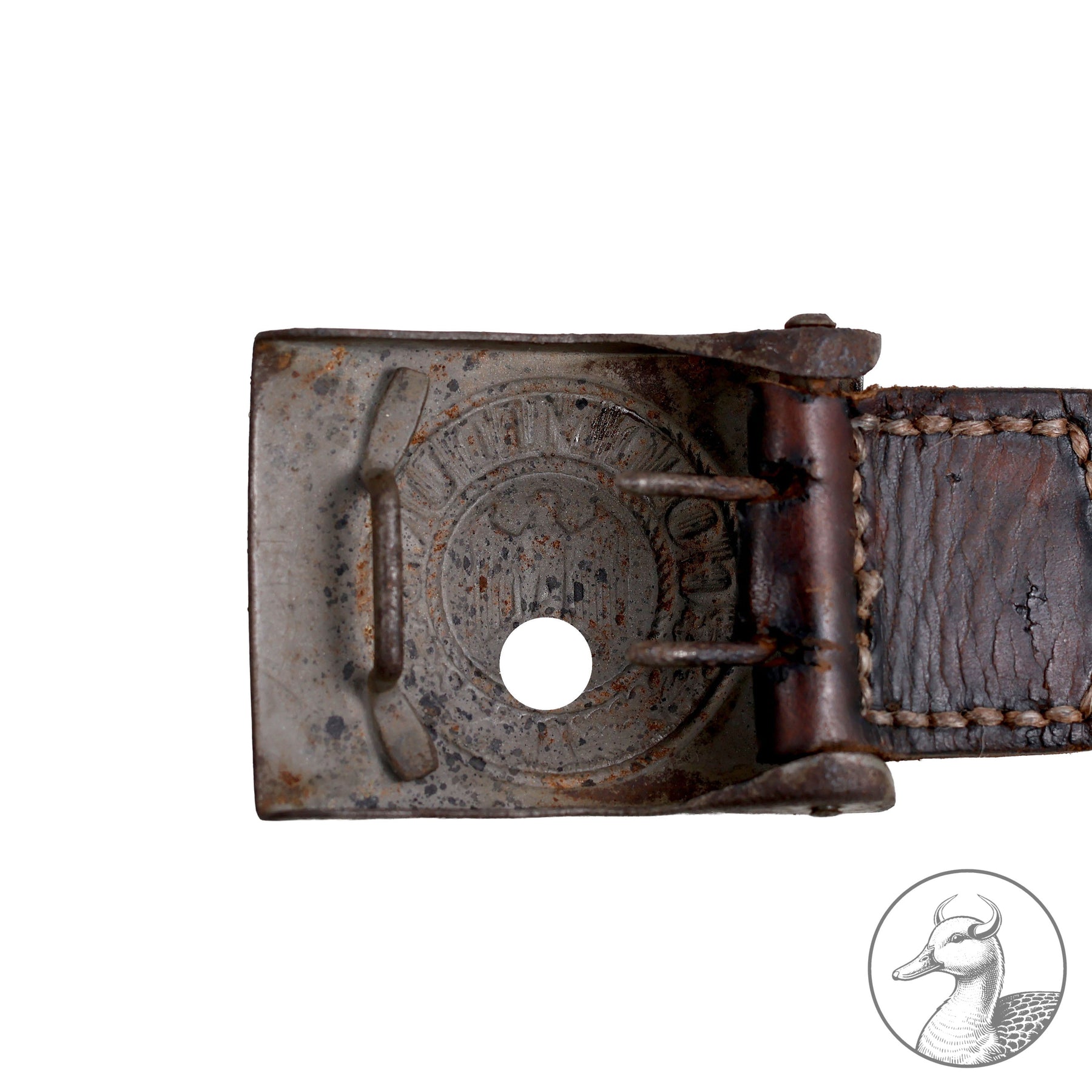 Originales Koppelschloss aus Eisen der Wehrmacht inkl. Lederzunge mit Herstellerprägung
