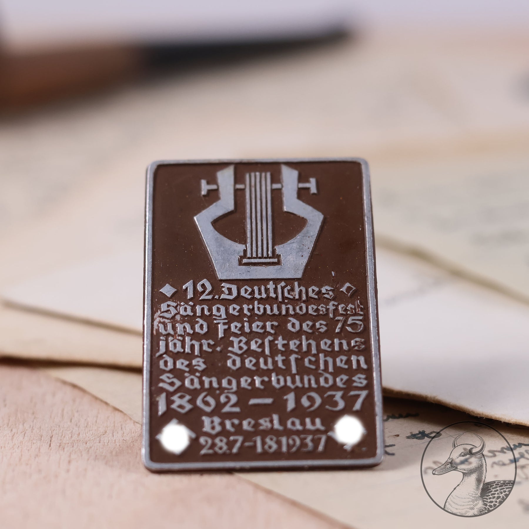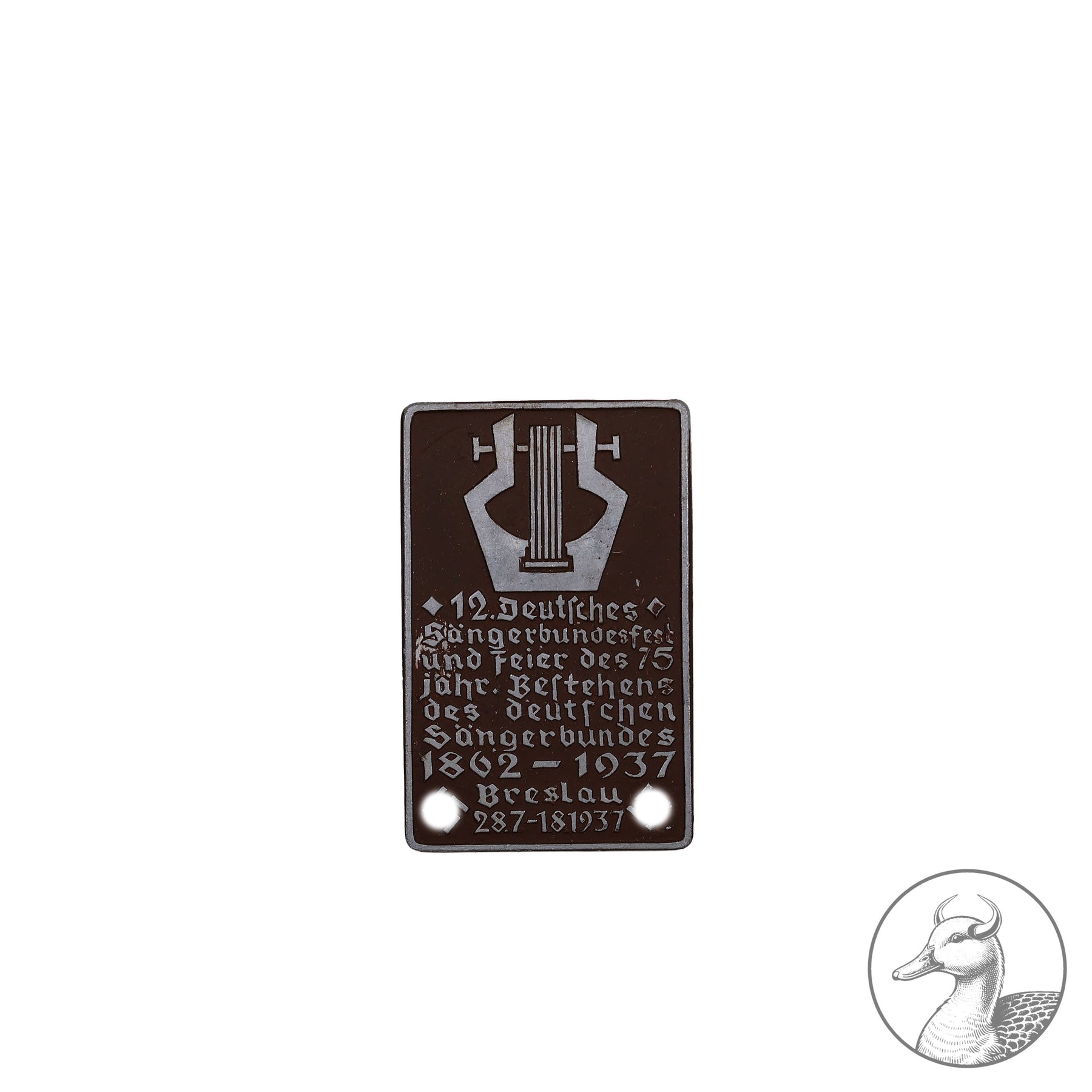 Originales Kleinabzeichen 12. Deutsches Sängerbundesfest und Feier des 75.jähr. Bestehens des Deutschen Sängerbundes 1862-1937 Breslau 28.7.-1.8.1937