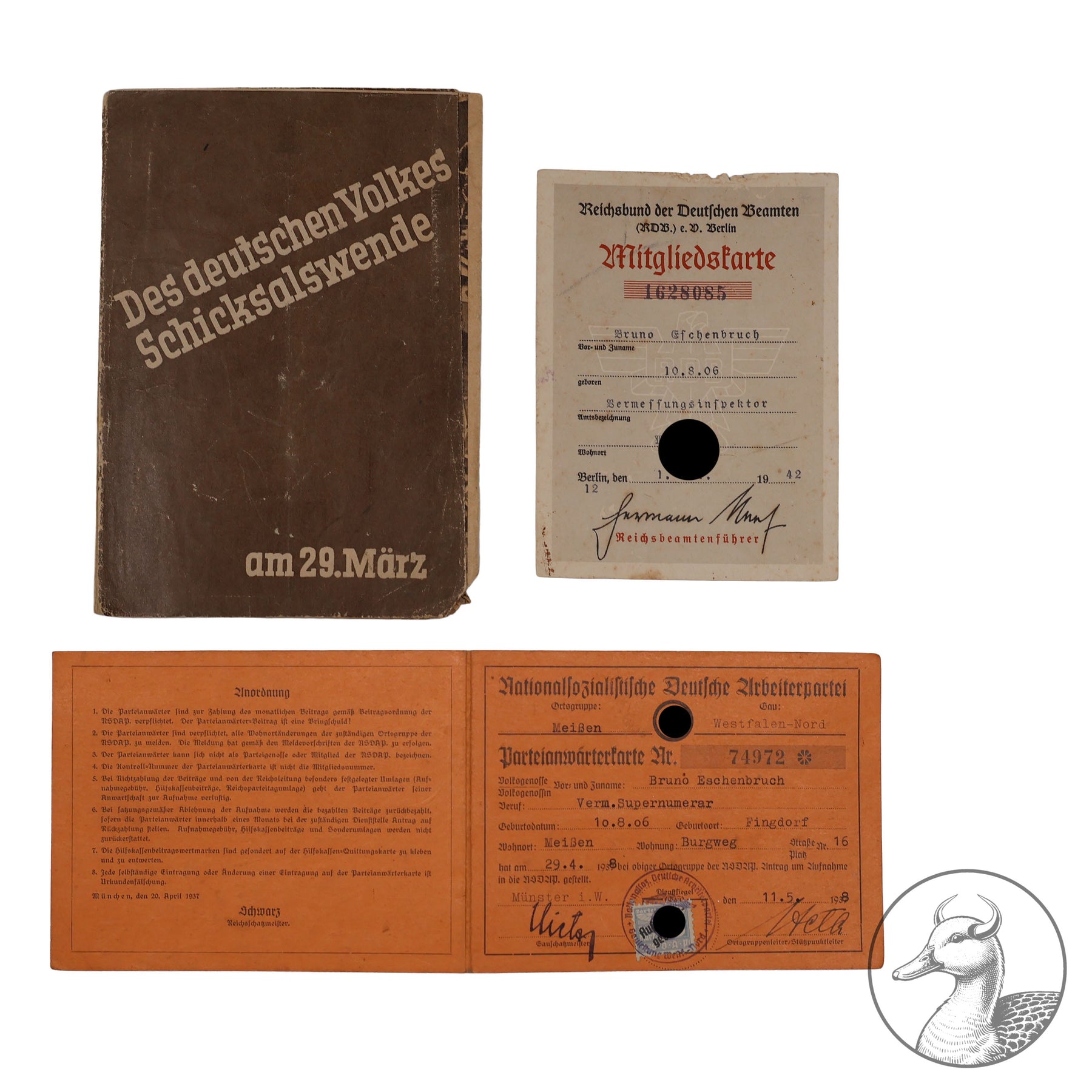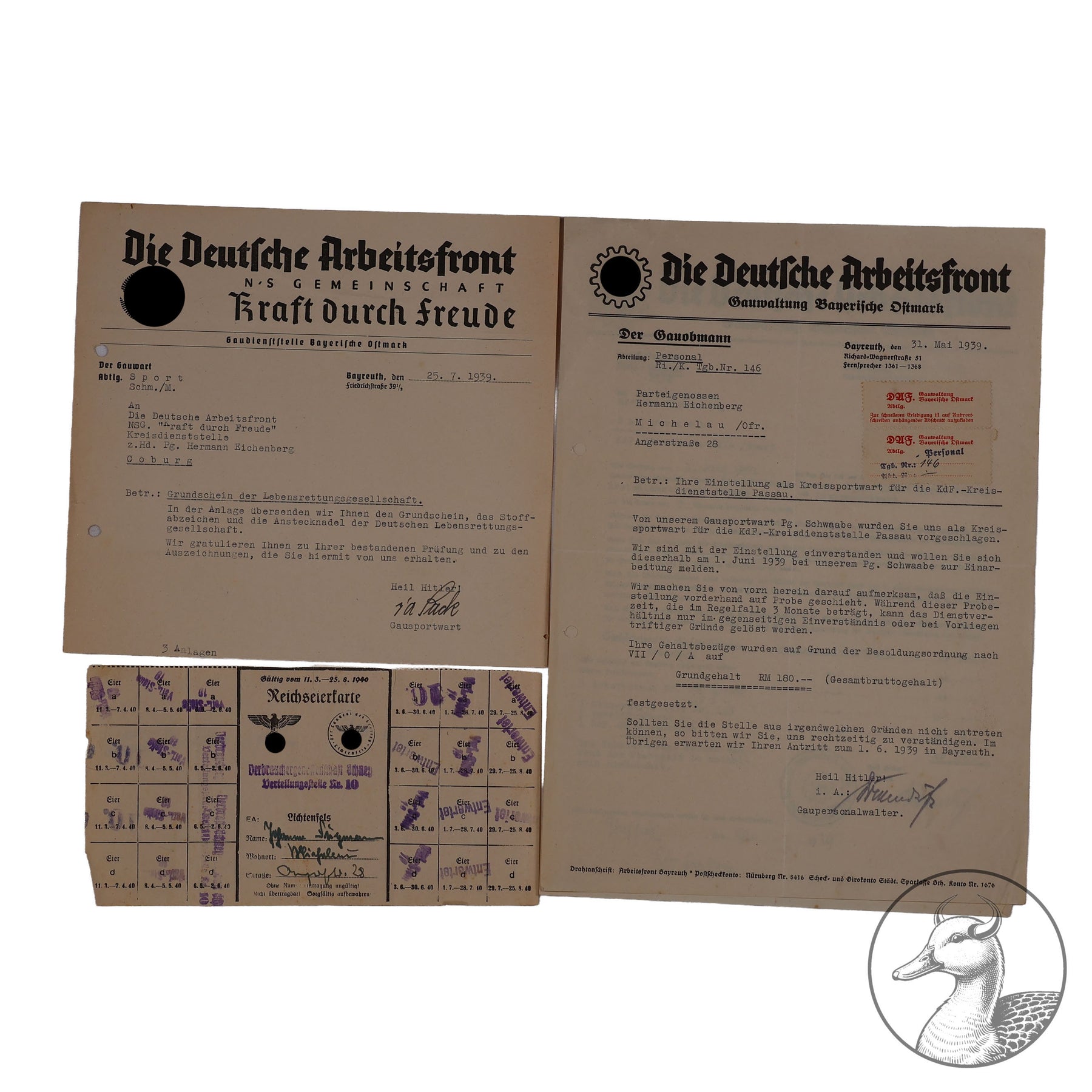 altersbedingter Zustand, Anwärterkarte, Partei, DAF Dokumente eines Kreissportwartes aus Bayreuth